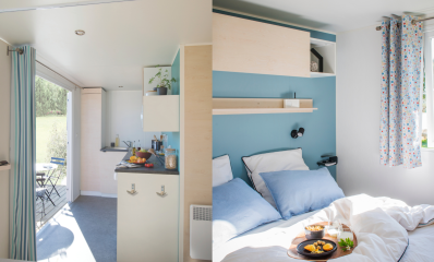 Voor een goede nachtrust heeft onze stacaravan 'Le Castelli' een slaapkamer met een tweepersoonsbed met dekbed en kussens, evenals verwarming.