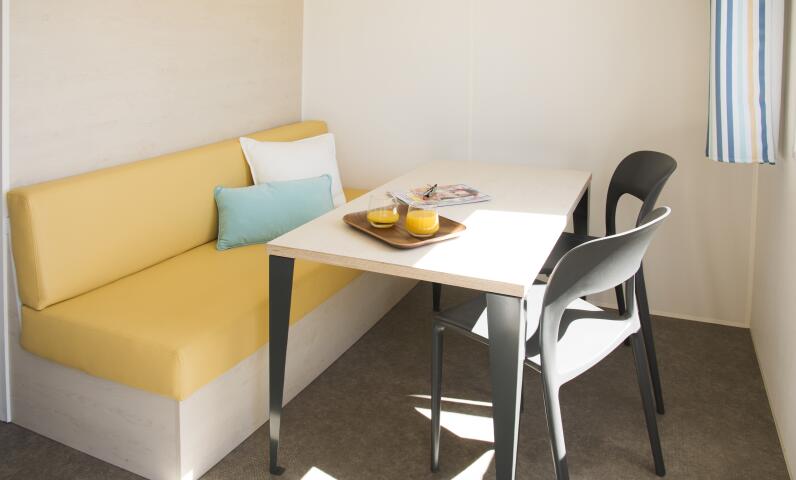 De stacaravan 'Le Castelli' is precies wat u zoekt! Ideaal voor stellen of vrienden, u vindt hier het minimum om een prettig verblijf op de camping door te brengen.