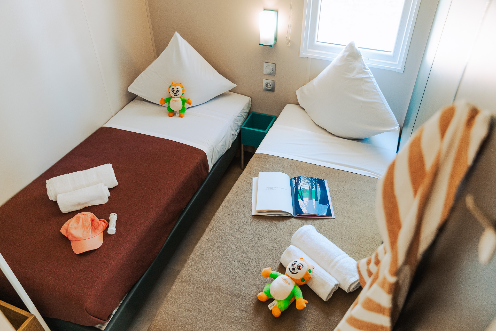 - 2 Eenpersoonsbed (80x190 cm) (deken en kussens voorzien)