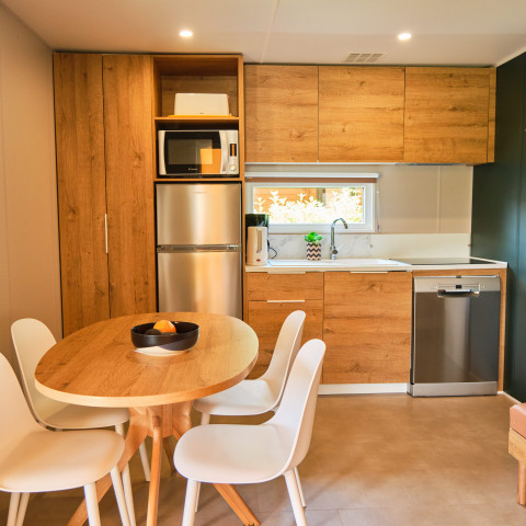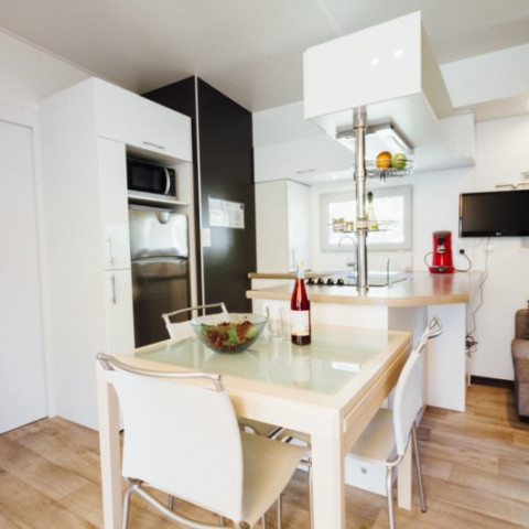 Ze zijn uitgerust met airco, 3 badkamers en 3 gescheiden toiletten: voldoende ruimte, luxe en campingplezier dus. Ervaar het comfort van de hoteldiensten die bij de huur zijn inbegrepen, zoals de lakens, handdoeken en eindschoonmaak, maar ook de plancha en de jacuzzi op het terras.