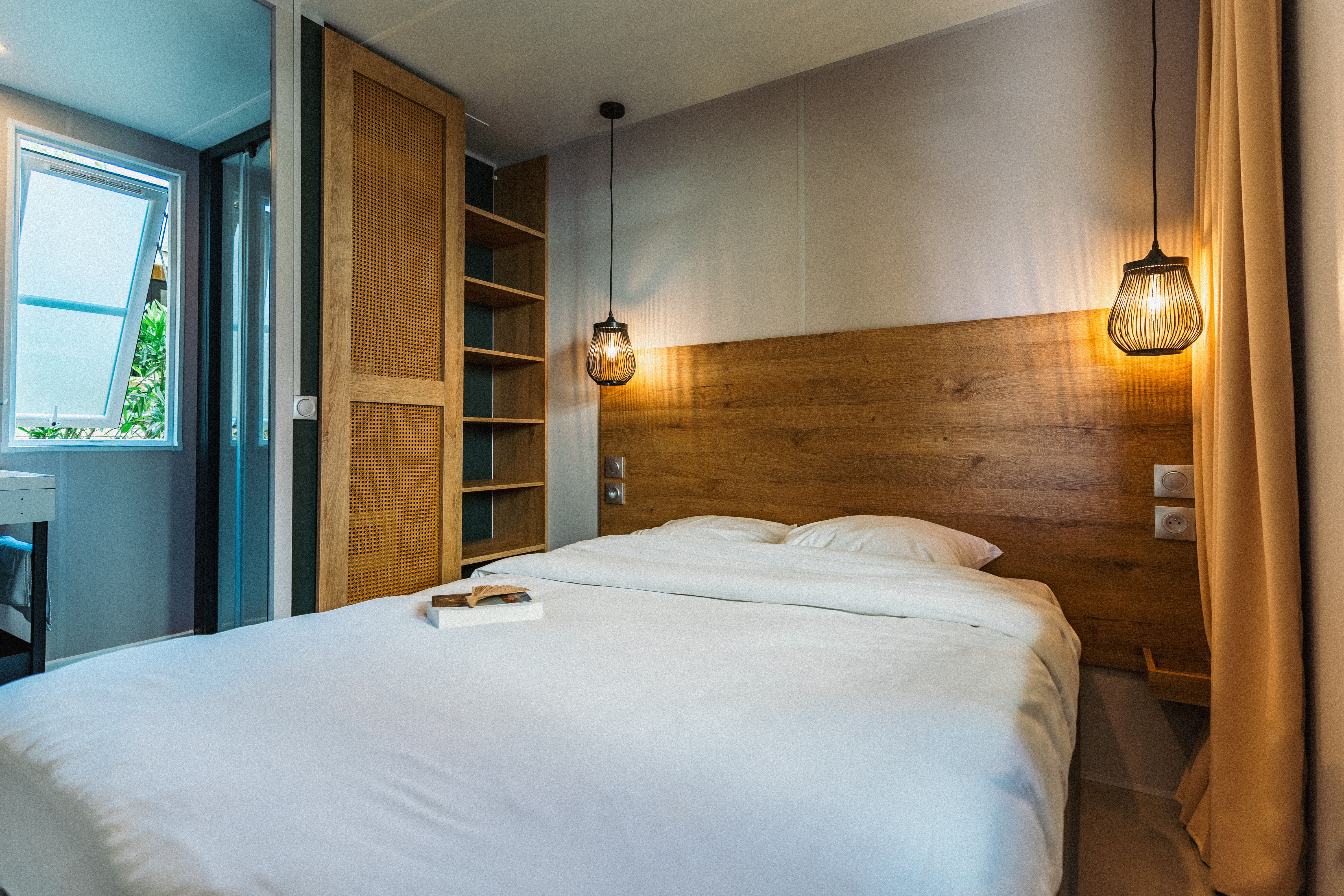Reserveer een van onze populaire stacaravans Sunêlia Luxe Noé. Dit huisje staat in een groen decor en biedt de nodige hoteldiensten.