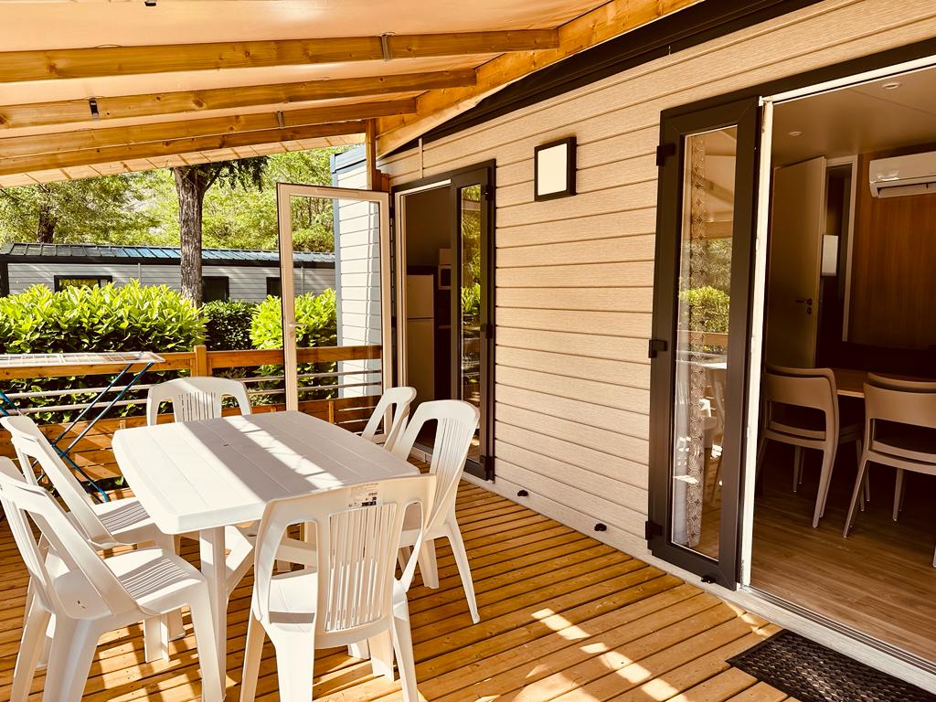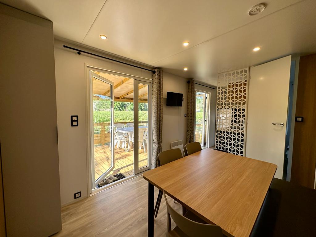 Wij beschikken over nieuwe, comfortabele en goed uitgeruste Louisiane stacaravans van 37 m² uit 2023, voorzien van airconditioning. U kunt genieten van een ruim overdekt terras met tuinmeubilair, ideaal om optimaal van het buitenleven te genieten.