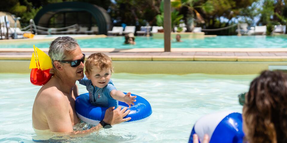 Op deze centrale plek van de camping kun je een duik nemen in het enorme buitenzwembad van 264m². Met uitzicht op de Middellandse Zee luier je hier in een zwembad met zeewater, omringd door een zwembadterras om lekker te zonnen.