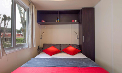 Het heeft een oppervlakte van ongeveer 25,5 vierkante meter en biedt plaats aan maximaal 5 personen. Het bestaat uit woonkamer met tafel en stoelen, keukenhoek voorzien van koelkast kolom compleet met vriezer, kookplaat 4 branders, spoelbak, potten en pannen. Het slaapgedeelte bestaat uit 2 slaapkamers, één met een tweepersoonsbed en één met 2 eenpersoonsbedden en één met een hoge vlag.