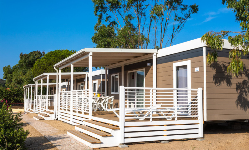 Fris, jong en gastvrij, de Mobilhome Baia Elite met een oppervlakte van ongeveer 33 m2 is ontworpen om families of vriendengroepen tot een maximum van 6 personen te huisvesten. Het interieur is modern en comfortabel: een hoekkeuken met schiereiland compleet met 4-pits kookplaat, spoelbak, kookgerei en serviesgoed, kolomkoelkast met vriezer, koffiezetapparaat, vaatwasserketel en magnetron. De grote Franse deur, met uitzicht op de ruime houten veranda, geeft de grote woonkamer helderheid, ingericht met een bank, tafel en stoelen. Om de accommodatie compleet te maken, een slaapgedeelte met 3 slaapkamers waarvan een tweepersoonsbed en 2 met 2 eenpersoonsbedden, een complete badkamer met toilet, douche, wastafel en 1 badkamer met toilet en wastafel. Linnengoed en handdoeken inbegrepen. Een paraplu en twee ligbedden zijn bij de strandservice inbegrepen.