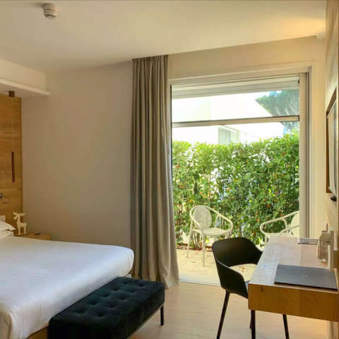 Zoek de hoogte op met onze Superior kamer, gelegen op de eerste verdieping en met een privébalkon met een prachtig uitzicht op het omringende dennenbos. Geniet van een uitzonderlijke buitenruimte waar je de zeelucht kan opsnuiven vanaf het moment dat je opstaat, terwijl je geniet van een heerlijke koffie.