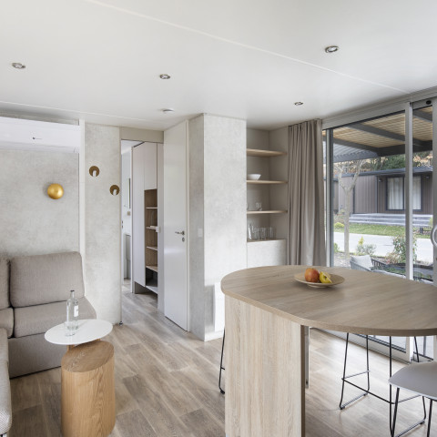 De Bungalow Basic Family heeft 2 slaapkamers; een met een tweepersoonsbed en de tweede met 2 eenpersoonsbedden. Al onze Bungalows hebben een terras met een gemeubileerde veranda met schaduw. Ze zijn uitgerust met een keuken met magnetron, koelkast, keukengerei en bestek. Ze hebben een badkamer met douche en WC. We herinneren je eraan dat handdoeken en lakens inbegrepen zijn.
