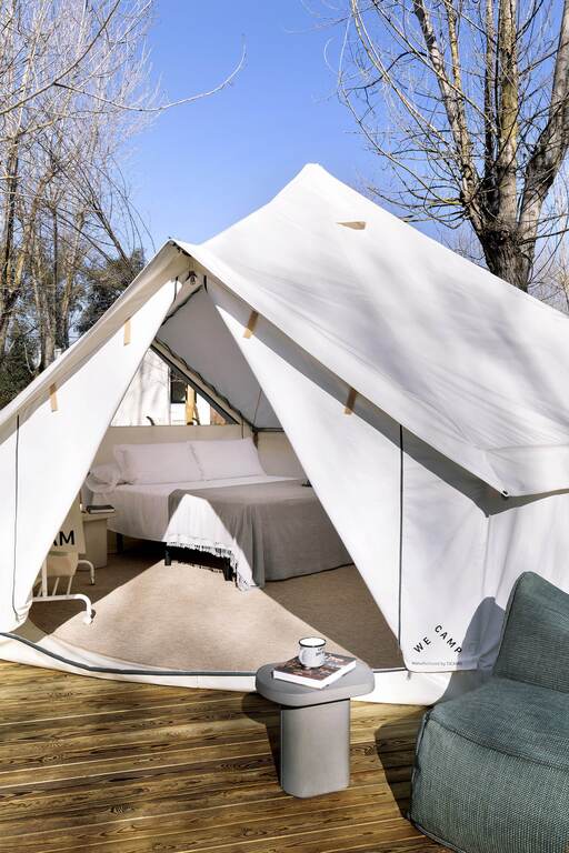 Onze Bell Tent is geweldig voor stelletjes of een groep van 3 die op zoek zijn naar iets anders midden in de natuur op de camping, met een vleugje luxe. Hij heeft geen keuken of eigen badkamer, maar de openbare toiletten liggen op slechts een paar meter van de tent. Het beste eraan? Het heeft een comfortabel tweepersoonsbed en een eenpersoonsbed met alle benodigdheden zoals handdoeken en beddengoed, evenals een minikoelkast, keukengerei en een magnetron. Honden en baby's zijn niet toegestaan in deze tent.
