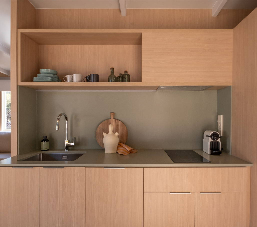 De Mobil Home Family is de perfecte keuze voor je vakantie met het gezin of een groep vrienden, zorgvuldig door ons ontworpen voor maximaal 4 personen. Deze moderne stacaravans bieden een gedetailleerd en ruim interieur voor jouw comfort.