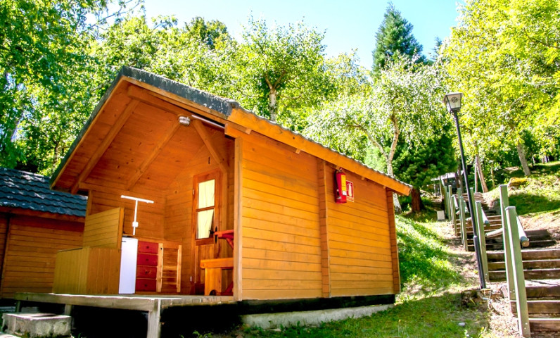 Houten hutten van 15 m², met één ruimte en capaciteit voor 2 personen zonder privébadkamer. Ze zijn ideaal voor een romantisch en comfortabel verblijf.