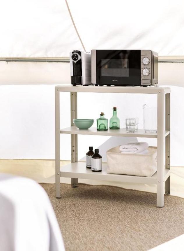Onze Bell Tent is geweldig voor stelletjes of een groep van 3 die op zoek zijn naar iets anders midden in de natuur op de camping, met een vleugje luxe. Hij heeft geen keuken of eigen badkamer, maar de openbare toiletten liggen op slechts een paar meter van de tent. Het beste eraan? Het heeft een comfortabel tweepersoonsbed en een eenpersoonsbed met alle benodigdheden zoals handdoeken en beddengoed, evenals een minikoelkast, keukengerei en een magnetron.